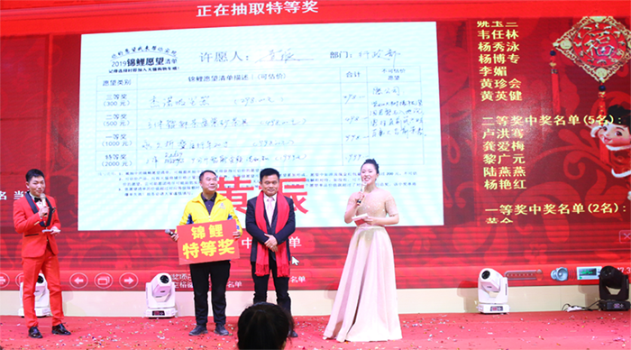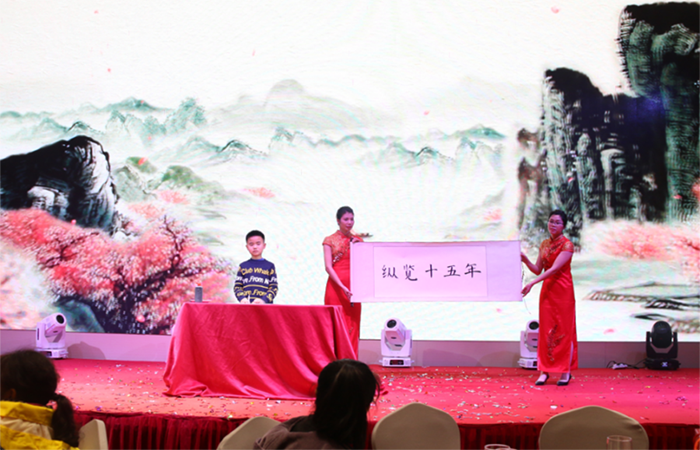 董事長致詞圖片 回顧2018,成績斐然;展望2019,我們信心滿懷!“天道酬勤、商道酬信、人道酬德、業(yè)道酬精”,新的一年,新的時期,縱覽人將堅持以“團結(jié)拼博、誠實守信、勇于擔當,做負責任的人,做最好的線纜”為行為準則,向著更高的目標邁進! 第一篇 激情表彰篇 有人說:一堆沙子是松散的,可是它和水泥、石子、水,混合后,比花崗巖還堅韌!一根麻繩是脆弱的,可是千百根麻繩捆成一股,它比鋼鏈還牢固!一個戰(zhàn)士的力量是有限的,可是千百個戰(zhàn)士團結(jié)在一起,就成為無堅不摧的力量!這就是團隊的力量、團結(jié)就是力量!縱覽人攻必克、戰(zhàn)必勝的力量! 縱覽十五年,正是因為有著這樣一批勤勤懇懇、默默付出、堅守產(chǎn)品品質(zhì)、悍衛(wèi)企業(yè)榮譽的優(yōu)秀縱覽人,才有了縱覽的今日輝煌! 2018年度質(zhì)量標兵獎圖片 【頒獎詞】品質(zhì)是企業(yè)的明鏡,透視著企業(yè)發(fā)展中每一步的艱苦跋涉;在縱覽人心中:品質(zhì)是責任、品質(zhì)是榮譽!質(zhì)量標兵們,用精益求精沉淀出卓越品質(zhì)!用卓越品質(zhì)鍛造出質(zhì)量的靈魂! 2018年度優(yōu)秀員工獎圖片 【頒獎詞】偉大出于平凡,平凡蘊涵精彩!謝謝你們?yōu)榭v覽的辛勤付出!我們將以你們?yōu)榘駱樱诠ぷ鲘徫簧暇ぞI(yè)業(yè)、發(fā)揮主人翁精神,為我們共同美好的明天而繼續(xù)奮斗! 2018年度忠誠骨干員工獎圖片(5年以上) 【頒獎詞】藍天的廣闊,是白云的堅守;大地的博大,是綠草的堅守;奇跡的出現(xiàn),是堅持的堅守;縱覽的發(fā)展,是因為有你們的堅守!感謝你們的忠心護主、辛勤付出!你們就是縱覽的楷模!縱覽的驕傲! 2018年度業(yè)績突出貢獻獎圖片 【頒獎詞】2018年,縱覽業(yè)績再次實現(xiàn)逆勢大增長,而這增長的背后,是有一個敢戰(zhàn)、能戰(zhàn)、善戰(zhàn)的鷹之團隊,他們不畏環(huán)境險惡,飛得高、望得遠,發(fā)現(xiàn)目標就頑強地追尋!他們不斷自我加壓、堅持突破,用出色的業(yè)績詮釋了什么是真正的王者之師! 凝聚產(chǎn)生力量、團結(jié)誕生希望!縱覽的每一個成就,都凝聚著全體縱覽人的辛勞和汗水,光榮屬于我們縱覽人! 第二篇 精彩競演篇 方隊展示拉開競演大幕,這個環(huán)節(jié)拼的是團隊精神,你看,誰,也不服誰呢! 氣勢磅薄的方隊精彩亮相,展現(xiàn)了縱覽團隊的氣勢、創(chuàng)意和不掉隊、不服輸團隊精神! 才藝競演環(huán)節(jié)有你絕對想不到的精彩:縱覽人就是這樣,:工作中是精英,舞臺上是明星!團隊有著迷一樣的自信! 開場舞《相伴-同行》表演者:中層管理人員 合唱《達產(chǎn)達標不是夢》表演者:生產(chǎn)部+廣東公司聯(lián)隊 舞蹈《縱覽工人有力量》表演者:質(zhì)量部+工藝部+設(shè)備部+總工辦聯(lián)隊 小品《一路有你》表演者:采購部+財務(wù)部聯(lián)隊 復古舞臺劇《歌舞青春》表演者:商務(wù)部+倉儲部聯(lián)隊 情景舞蹈《幸福縱覽人》表演者:人力資源部+行政部聯(lián)隊 詩朗誦《我自豪,我是縱覽人》表演者:大客戶部+市場部+技術(shù)服務(wù)部聯(lián)隊 舞蹈《隔壁泰山》表演者:質(zhì)量部 現(xiàn)場氣氛嗨爆!精彩的不要不要的,你看了,是否有心動,有想加入的沖動呢?! 第三篇 感恩家人篇 作為縱覽人,我們是自豪的!作為縱覽人,我們更是感恩的,在縱覽成長的過程中,我們不會忘記,一路幫扶著我們的朋友和家人;更不會忘記,一批批曾為縱覽發(fā)展付出直至退休的縱覽人! 公司向歷屆在縱覽退休的員工代表送上慰問金 才藝秀 演唱《Demons》+書法秀 表演者:縱覽家人 陳思凱 古箏演奏《女人花》表演者:縱覽家人 黃欽湘 情境舞蹈《大王叫我來巡山》表演者:縱覽家人 梁世軒等小朋友 演唱《敢問路在何方》表演者:縱覽集團高管團隊 第四篇 歡樂不停篇 特別的中獎方式:你的愿望我買單!縱覽助你實現(xiàn)2019你的錦鯉愿望!興奮嗎!!! 中獎人要和主持人對上暗號才能領(lǐng)獎!看到了嗎,答案就在他背面的大屏上! 幸好這些理念縱覽伙伴們早已熟爛于心了,回答的溜溜的! 年會財神爺扮演者居然被抽中了錦鯉特等獎,天意啊! 看到了嗎?大屏上愿望單就是他親筆寫下的愿望---當然,縱覽助你實現(xiàn)! 不夠不夠,縱覽十五周年,表演抽獎都結(jié)束了,還要再加個送幸運錦鯉福袋,按抽中的桌爆獎!被抽中的桌每個人都會得到福袋哦,你興奮嗎! 第五篇 祝福篇 讓我們共同舉杯,為2019縱覽更加輝煌燦爛,取得更好的業(yè)績,干杯---! 過去的成績,是縱覽人十四年如一日,堅持不懈爭做最好的成果;是縱覽人用信用、責任與擔當換來的成果;這成果來之不易,我們縱覽人要努力保護并不斷擴大這個成果,讓這個成果成為推動縱覽高質(zhì)量發(fā)展的源動力。 2019年,縱覽人將肩負著更大的責任和使命,我們將以昂揚的斗志,踏上新夢想與新征程。讓我們緊緊圍繞著集團公司的經(jīng)營發(fā)展目標,團結(jié)一心、攜手共進,譜寫縱覽美好的新篇章! 祝福縱覽、祝福縱覽人!
