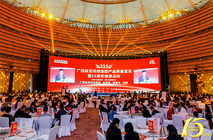 2019年3月13日下午15:30分,廣西縱覽線纜集團3?15產品質量宣言暨十五周年感恩盛典在南寧國際會展中心朱槿花廳隆重舉行。廣西壯族自治區市場監督管理局、南寧市市場監督管理局、南寧市政法委等領導出席了本次活動,各協會、銀行、高等院校、廣大經銷商、五金店及十余家區內外媒體朋友們共同見證了本次活動。 廣西縱覽線纜集團聯手廣西廣播電視臺新聞頻道、廣西建筑裝飾協會曝光了電線行業低價、低質的市場亂象,發起了共同關注用電安全的倡議,向社會做出了“做負責任的人,做最好的線纜,抵制偽劣電線電纜,保證為客戶提供優質電線電纜,如經抽檢不合格,由生產企業負責雙倍賠償”的公開承諾。 廣西縱覽線纜集團宣布正式進入民用領域,讓老百姓也終于能用上專供南方電網的放心品牌了。 作為廣西線纜行業的龍頭標桿企業,縱覽線纜集團發展不忘回饋社會,為弘揚正義,鼓勵見義勇為精神,縱覽線纜集團承諾:企業每銷售1公里電線電纜產品,向見義勇為基金會捐獻1元錢。 縱覽線纜集團十五年的發展,離不開社會各界朋友們的關心、信任和支持。為感恩朋友、感恩客戶,縱覽公司為各位嘉賓安排了精彩的文藝表演,臺灣歌星卓依婷的精彩獻唱將活動推向高潮。 廣西縱覽線纜集團3?15產品質量宣言暨十五周年感恩盛典圓滿成功。廣西廣播電視臺新聞頻道、廣西新聞網、南寧晚報、網易新聞等十余家媒體對本次活動進行了全程錄制和報道。 |