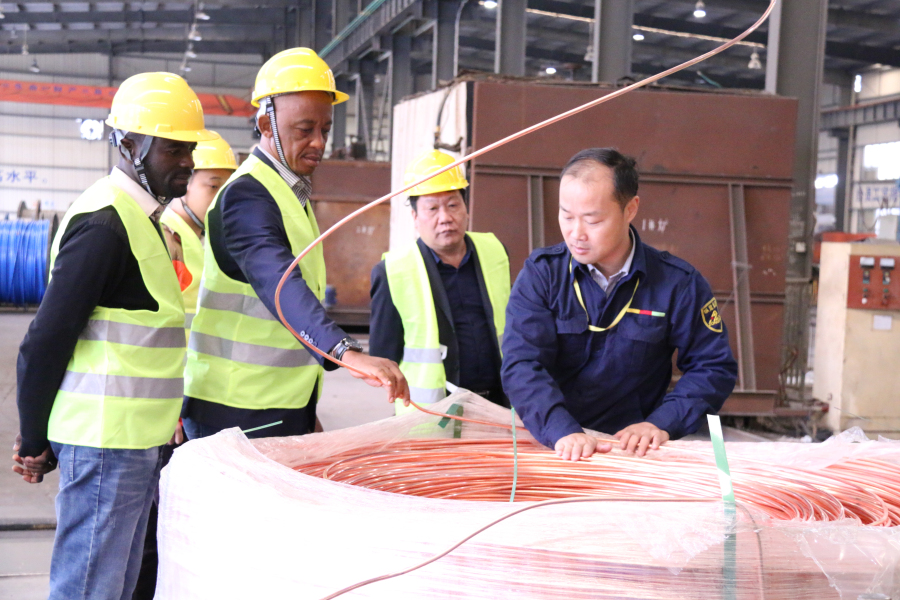 2016年11月26日,非洲剛果金國家電網總經理丹尼斯一行不遠萬里蒞臨廣西縱覽線纜集團有限公司參觀考察。 在劉總工程師等領導的陪同下,宏銳公司銷售總監魯玉成和非洲剛果金國家電網總經理丹尼斯參觀了我公司的生產車間。劉總工程師詳細介紹了我公司生產的線纜產品特性與亮點。丹尼斯在切身體會了我公司的生產情況和產品之后,對公司的技術實力及規模表示贊賞,并且詳細的詢問了線纜的生產技術和銷售情況。他表示,此次訪問不僅有助于剛果金學習借鑒中國的經驗,還將有力促進縱覽與剛果金的友好交流合作。最后,丹尼斯與縱覽線纜集團的員工進行了親切合影,還表達了并進一步建立合作關系的意愿,希望能與縱覽集團進行深入的交流與合作。 |