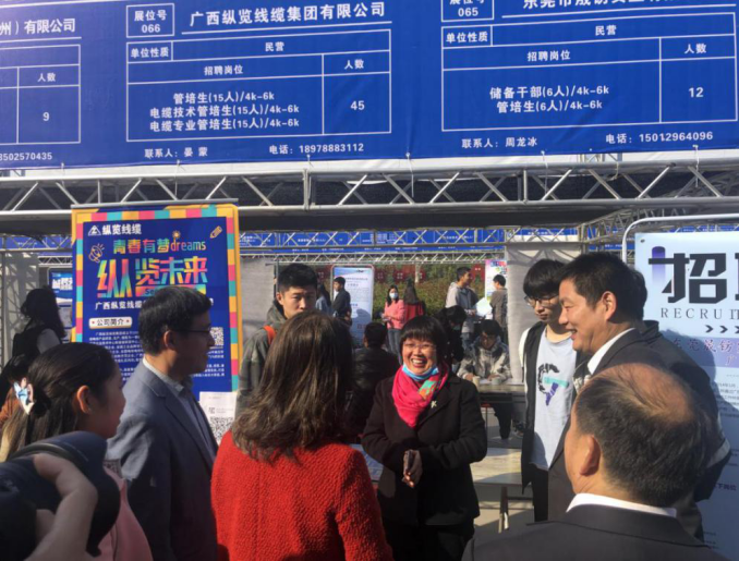 “問渠哪得清如許,為有源頭活水來”,一個公司要發展壯大、團隊要保持活力就要不斷地注入新鮮血液。10月24日,由縱覽集團總裁助理兼人力行政總監張彩菊女士帶隊的校園招聘領導小組不遠千里,來到“電線電纜行業人才培養的搖籃”——河南工學院,招攬人才,為縱覽人才儲備添磚加瓦。 張彩菊總監在招聘會上與同學們進行交流 本次招聘會主要針對河南工學院電線電纜及相關專業的同學。招聘會上,張彩菊總監耐心地一一解答同學們對意向職位的疑問,并與其溝通了解他們的就業心態和想法,幫助他們走好職業生涯的第一步。“畢業不是人生的終點而是新的起點,趁著年輕,多吃苦,多歷練!”張總鼓勵著每一位同學,希望他們都能在新的起點,熱血出發。 河南工學院副校長劉莉莉親臨招聘會現場與張總進行了親切交流,了解企業招聘計劃、發展前景,并認真聽取了人才培養的意見和建議。 河南工學院副校長劉莉莉與張總進行親切交流 宣講會現場 人才,隸屬于縱覽線纜集團兩線管理——產品生產線、人才生產線之一。為更好地搭建縱覽集團人才培養的搖籃,集團先后與各大高校建立校企合作關系,為日后進一步開展多層次,多形式,多領域的合作奠定了基礎。同時,校企合作也為企業人才儲備提供了良好的平臺。縱覽線纜集團一直致力于人才搖籃的搭建與人才孵化,“星星之火,走進高校,星火相傳、生生不息!