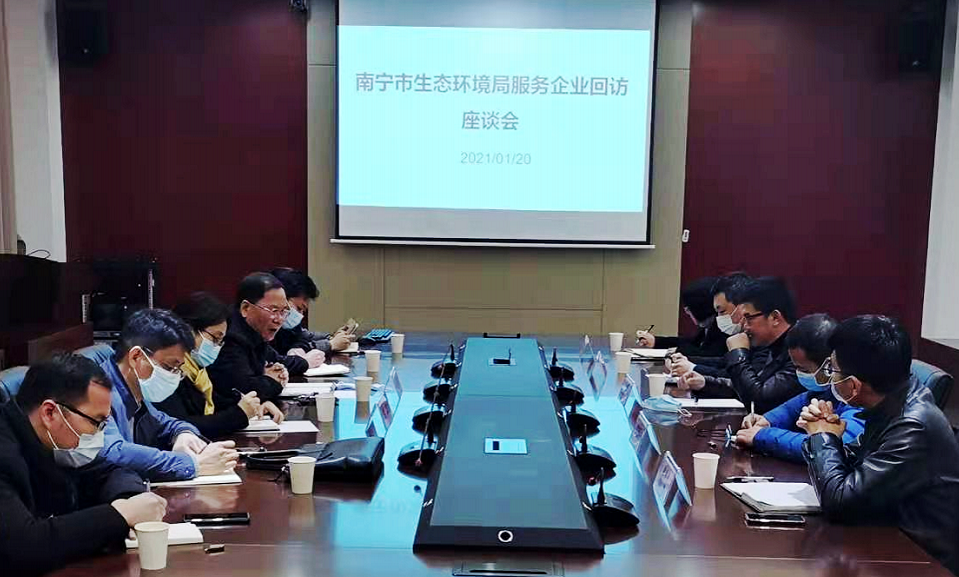 2021年1月20日,南寧市生態環境局黨組書記、局長韋好鵬,總工程師陳莉一行到南寧市經濟技術開發區回訪縱覽集團等南寧市首批環保重點服務單位。