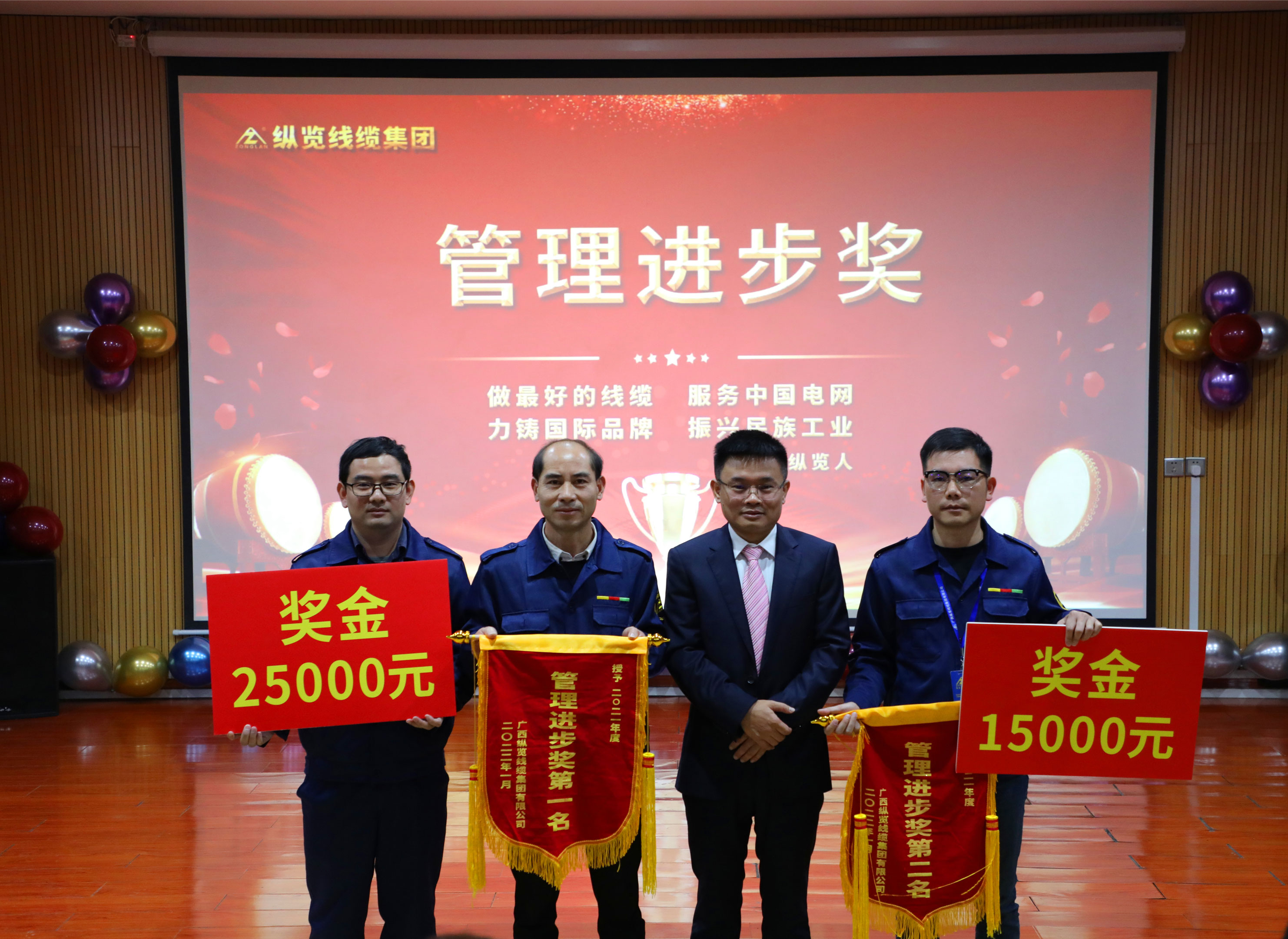 1月19日,縱覽線纜集團2021年度表彰大會暨2022年迎新春活動在多功能廳舉行。集團董事長陳秀銳、監事會主席林曉敏、集團副董事長徐洪虎、總工程師劉小祥、董事長助理兼財務總監陳楊、董事長助理兼審計監察部經理張彩菊、人力行政總監吳培軍、工廠中心副總監兼生產部經理黎永豪、市場總監韋艷秋、市場副總監蘇宏發、大客戶總監李翠仙出席此次活動,縱覽伙伴們齊聚一堂,一同分享活動喜悅。 集團董事長陳秀銳先生作新年致辭,他表示,2021年是縱覽艱苦卓絕的一年,我們克服了線纜產業原材料價格高漲,新冠肺炎疫情反復的沖擊下砥礪前行,不忘初心,賡續卓越。我們認真踐行“產品創一流,服務求滿意,創新促發展,誠信鑄品牌”的質量方針,對標國際先進標準,自我革新、優中升級,在公司管理規范化、標準化、科學化上邁出堅實步伐。新的一年,經濟形勢依舊嚴峻,我們要以更飽滿的工作熱情和昂揚的斗志,立足崗位、主動作為,不斷開創各項工作新局面,共同譜寫縱覽新篇章。 辭舊歲篤行不怠,迎新春踔厲奮發。備受矚目的表彰大會環節開始了!我們對過去一年的先進個人和團隊進行表彰,他們是我們工作中的典范,團隊中的骨干,他們盡心盡力為公司效力,用精益求精沉淀出卓越品質,造就了縱覽人的靈魂。 先進個人表彰 ▲質量標兵獎 ▲優秀員工獎 ▲忠誠骨干獎 ▲十大新聞熱心參與獎 先進團隊表彰 ▲創新技術獎 ▲管理進步獎 雖然因為疫情的反復,我們不能為大家獻上完美的迎新春活動,但依舊澆不滅我們縱覽伙伴們的熱情。因舞臺有限,我們通過視頻+現場表演的方式呈現了迎新春活動,雖然與往的活動形式不同,但依舊展現了我們人文風采和文化精神,精、氣、神十足,熱情洋溢,氣勢如虹。 勝不驕敗不餒,最后生產隊、供線隊獲得活動競演第三名,榮耀聯隊、總財設技聯隊獲得第二名,行政質量聯隊獲得第一名。 ▲生產隊、供線隊獲得第三名 ▲榮耀聯隊、總財設技聯隊獲得第二名 ▲行政質量聯隊獲得第一名 美好的時刻總是短暫的,最后節目以“我想對縱覽說”溫情的方式結束了這次迎新春活動,大家通過鏡頭回憶起這些年來與公司經歷都令人難以忘懷。本次年會,充分展現了我是縱覽人,我自豪的自我認同感,同時也增進了員工之間的感情和集體歸屬感,2022年,我們一起攜手并進,共創縱覽新輝煌! |