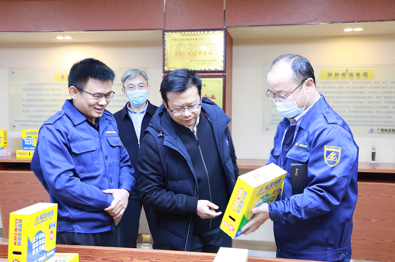 2月21日下午,南寧市副市長(zhǎng)丁偉在副秘書長(zhǎng)羅景文陪同下,帶領(lǐng)市工信局、統(tǒng)計(jì)局,廣西工業(yè)振興特派員工作隊(duì)駐南寧市工作隊(duì)、經(jīng)開區(qū)管委會(huì)等部門負(fù)責(zé)人就企業(yè)復(fù)工復(fù)產(chǎn)情況蒞臨我司調(diào)研指導(dǎo)。集團(tuán)公司董事長(zhǎng)陳秀銳全程陪同調(diào)研。 在我司期間,丁偉副市長(zhǎng)一行參觀了廣西線纜行業(yè)唯一的國(guó)家級(jí)綠色工廠、唯一的CNAS檢測(cè)中心,智能制造監(jiān)造系統(tǒng),榮譽(yù)展廳;認(rèn)真聽取了我司有關(guān)復(fù)產(chǎn)復(fù)工、如何更好地發(fā)揮龍頭標(biāo)桿作用服務(wù)地方經(jīng)濟(jì)建設(shè)和強(qiáng)首府戰(zhàn)略的匯報(bào),詳細(xì)了解我司生產(chǎn)經(jīng)營(yíng)發(fā)展規(guī)劃,傾聽了有關(guān)意見建議。 ▲丁偉副市長(zhǎng)在認(rèn)真了解我司防火家裝線產(chǎn)品性能指標(biāo) ▲我司董事長(zhǎng)向丁偉副市長(zhǎng)詳細(xì)介紹我司專利電纜產(chǎn)品的制造工藝 丁偉副市長(zhǎng)對(duì)我司通過(guò)開展?fàn)巹?chuàng)南寧市市長(zhǎng)質(zhì)量獎(jiǎng)、自治區(qū)主席質(zhì)量獎(jiǎng)活動(dòng),并榮獲第四屆南寧市市長(zhǎng)質(zhì)量獎(jiǎng)、第五屆自治區(qū)主席質(zhì)量獎(jiǎng)提名獎(jiǎng),對(duì)公司經(jīng)營(yíng)管理、生產(chǎn)裝備、技術(shù)研發(fā)、車間環(huán)境、質(zhì)量管控、檢測(cè)能力、品牌建設(shè)等方面實(shí)現(xiàn)全面提升、競(jìng)爭(zhēng)實(shí)力有效增強(qiáng)給予了肯定和高度評(píng)價(jià)。他指出,工業(yè)企業(yè)是經(jīng)濟(jì)發(fā)展的中流砥柱,服務(wù)好企業(yè)是政府部門的職責(zé)所在??v覽集團(tuán)作為廣西龍頭企業(yè),也是廣西線纜行業(yè)標(biāo)桿企業(yè),應(yīng)全面參與地方經(jīng)濟(jì)建設(shè),地方項(xiàng)目要優(yōu)先使用本地名優(yōu)產(chǎn)品。政府有關(guān)部門要進(jìn)一步做好企業(yè)服務(wù),幫助企業(yè)紓困解難,為企業(yè)增添信心,助力企業(yè)可持續(xù)的高質(zhì)量發(fā)展。 ▲丁偉副市長(zhǎng)認(rèn)真觀看我司產(chǎn)品電阻項(xiàng)目對(duì)比試驗(yàn) ▲丁偉副市長(zhǎng)一行在我司生產(chǎn)制造車間參觀指導(dǎo) 集團(tuán)公司副董事長(zhǎng)徐洪虎、總工程師劉小祥、董事長(zhǎng)助理兼財(cái)務(wù)總監(jiān)陳楊、董事長(zhǎng)助理兼審計(jì)監(jiān)察部經(jīng)理張彩菊、人力行政總監(jiān)吳培軍參加了調(diào)研活動(dòng)。 |