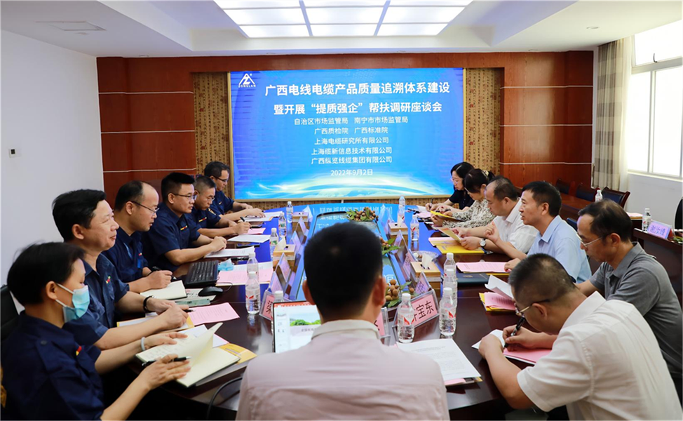 9月2日上午,廣西市場監(jiān)管局質(zhì)量監(jiān)管處處長劉鐵輝就廣西電線電纜產(chǎn)品質(zhì)量追溯體系建設(shè)暨開展“提質(zhì)強企”活動率工作組到我司進(jìn)行調(diào)研指導(dǎo),我司董事長陳秀銳全程陪同。 陳秀銳董事長對劉鐵輝處長一行表示熱烈的歡迎,并對廣西各級市場監(jiān)管部門、技術(shù)機構(gòu)對我司質(zhì)量檢驗、產(chǎn)品追溯、生產(chǎn)管理等質(zhì)量提升工作給予的幫助和支持表示感謝。 公司總工程師劉小祥向調(diào)研組詳細(xì)介紹了公司經(jīng)營發(fā)展、智能工廠建設(shè)、產(chǎn)品質(zhì)量溯源建設(shè)情況。調(diào)研組有關(guān)技術(shù)專家介紹了全國質(zhì)量追溯體系建設(shè)成果、質(zhì)量追溯建設(shè)方案和線纜企業(yè)數(shù)字化轉(zhuǎn)型等相關(guān)情況,并對我司產(chǎn)品質(zhì)量追溯體系建設(shè)工作給予點評、提出有關(guān)改進(jìn)優(yōu)化的意見建議。 劉鐵輝處長對我司質(zhì)量管理工作和產(chǎn)品質(zhì)量溯源體系建設(shè)工作給予充分肯定,對產(chǎn)品溯源連接電工系統(tǒng)解決客戶問題和偽劣產(chǎn)品舉報獎勵舉措表示高度贊賞。他表示,縱覽線纜集團(tuán)履行企業(yè)主體責(zé)任、勇于擔(dān)當(dāng)?shù)木唧w表現(xiàn),是廣西電線電纜行業(yè)高質(zhì)量發(fā)展的標(biāo)桿和典范。 座談會前,調(diào)研組一行參觀了我司與國家電網(wǎng)EIP電工裝備智慧物聯(lián)平臺和南方電網(wǎng)供應(yīng)鏈服務(wù)平臺互聯(lián)的MES智能監(jiān)造系統(tǒng)、榮譽展廳和廣西行業(yè)唯一CNAS實驗室,深入電線車間了解自動化生產(chǎn)和產(chǎn)品掃碼溯源。 廣西市監(jiān)局質(zhì)量監(jiān)管處四級調(diào)研員黃飛雪,南寧市市場監(jiān)管局副局長段壽紅、產(chǎn)品質(zhì)量監(jiān)督科科長金濤,廣西質(zhì)檢院黨委委員、業(yè)務(wù)負(fù)責(zé)人周壽勇,機電所所長謝汝峰,廣西標(biāo)準(zhǔn)院編碼應(yīng)用研究所長何榕,上海電纜研究所有限公司、上海纜新信息技術(shù)有限公司技術(shù)專家,我司領(lǐng)導(dǎo)陳楊、吳培軍、黎永豪以及IT信息部、市場部相關(guān)負(fù)責(zé)人參加座談會。 |