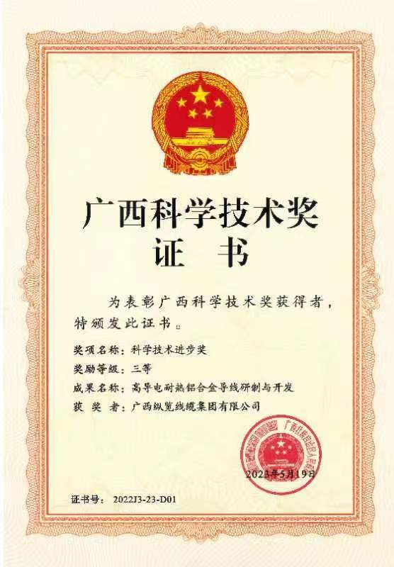 近日,2023年廣西科學技術獎勵大會在南寧隆重舉行,會議表彰了獲得2022年度廣西科學技術獎獲獎單位和人員。自治區黨委書記、自治區人大常委會主任劉寧出席大會,自治區黨委副書記、自治區主席藍天立在會上講話,并共同為獲獎代表頒獎。 我集團研發團隊科研成果《高導電耐熱鋁合金導線研制與開發》項目榮獲2022年度廣西科學技術進步獎三等獎。 本項目發明的高導電耐熱鋁合金導線制備技術,解決了長期以來困擾國內線纜制造企業該產品導電性能不穩定、原材料品位純度要求高,生產效率低,難以批量生產的問題。為國家電網和南方電網等電網公司高壓、超高壓輸電線路工程高導電耐熱鋁合金導線制備,提供了技術和生產保障。滿足了電力建設工程對輸電線路架空導線長距離、大跨越、大傳輸容量、高導電率的技術要求。 這是縱覽線纜集團近年來高度重視科研投入、加大力氣推進創新工作的縮影,也是我集團深入貫徹實施創新驅動發展戰略,聚焦產業鏈深度融合,推動產品優化升級,大力加強高質量發展的重要成果。 下一步,縱覽線纜集團將不忘初心,做創新驅動發展排頭兵,為壯美廣西經濟建設貢獻縱覽力量。 |
