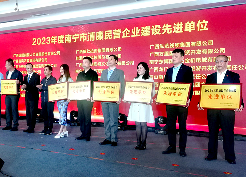 1月19日,南寧市工商聯舉行2024年南寧市工商界迎春座談會。自治區(qū)工商聯副主席蔡家東,南寧市黨委常委、統(tǒng)戰(zhàn)部部長、副市長張自英出席。 會上表彰了2023年在萬企興萬村、清廉民企建設、人民調解等工作中成績顯著、做出突出貢獻的商會、企業(yè)和個人。我集團在清廉民企建設方面又受到表彰。我集團高度重視清廉民企建設工作,注重發(fā)揮集團黨組織的政治引領和組織功能作用,結合企業(yè)經營實際創(chuàng)造性的開展清廉民企建設工作,取得積極成效,為公司高質量發(fā)展發(fā)揮了重要賦能作用。 集團繼2022年被授予“南寧市清廉民企建設標桿企業(yè)”榮譽后,如今再次被評為“2023年度南寧市清廉民企建設先進單位”。 |