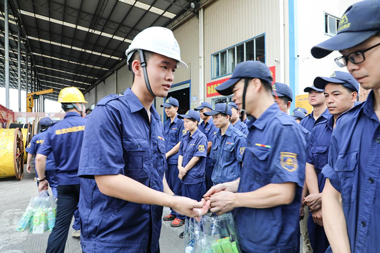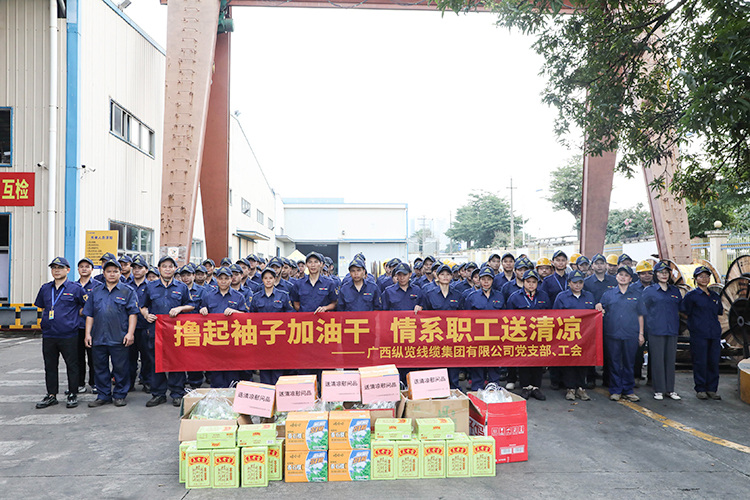 7月22日上午,廣西縱覽線纜集團黨支部、工會帶著清涼飲料、防暑藥品走進生產車間開展”擼起袖子加油干 情系職工送清涼“慰問活動,為奮斗在烈烈夏日里的一線生產員工送上的一縷清涼。集團常務副總經理陳思源、集團支部書記吳培軍、工會主席陳楊、工廠中心副總監黎永豪出席慰問活動。