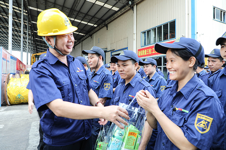 活動現場,集團黨支部、工會為生產一線員工準備了王老吉、花露水、清涼油、藿香正氣水等防暑降溫物資,滿足職工們在高溫作業中的日常防護與緊急處理需求。出席活動集團領導將精心準備的“清涼禮包”發放到每一位員工手上,感謝他們勇戰高溫、堅守崗位的辛勤付出,并叮囑他們在夏季的工廠內作業時注意防暑防曬、勞逸結合,確保平安度夏。