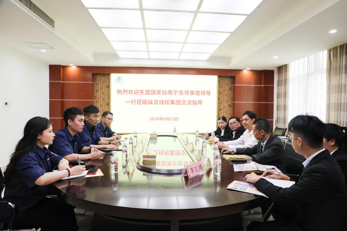 8月23日,老撾駐南寧總領事翁巴努·西巴色、柬埔寨駐南寧總領事館領事陳速成及相關外事人員在廣西貿促會、廣西國際商會副會長劉樹義的陪同下到廣西縱覽線纜集團實地參觀考察。集團總經理陳思行、常務副總陳思源、副總工程師蘇宏發及相關外貿業務人員陪同參觀。 翁巴努總領事一行先后參觀了我集團智能監造系統、榮譽展廳、國家CNAS認可實驗室、生產車間,詳細了解了我集團20年來在企業經營管理、服務海外項目等方面所取得的成績。 座談會上,雙方圍繞如何推動廣西優質線纜產品走進東盟市場、深化在采礦業、基礎建設等領域的合作展開了深入討論。陳思行詳細介紹了集團的發展戰略與全球化布局,表達了對東盟市場的重視與期待。翁巴努則高度評價了縱覽服務電網多年來的產品的品質,相信縱覽集團有能力服務老撾、柬埔寨等地的重大項目建設,并表示東盟國家擁有豐富的資源與市場潛力,雙方合作前景廣闊。期待建立更加緊密的合作機制,實現優勢互補、互利共贏,為中國--東盟合作友誼與合作注入新的活力。 |